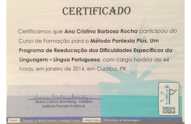Foi um curso intensivo de uma semana em Curitiba, conheci testes novos e acrescentei o método panlexia em minha prática.