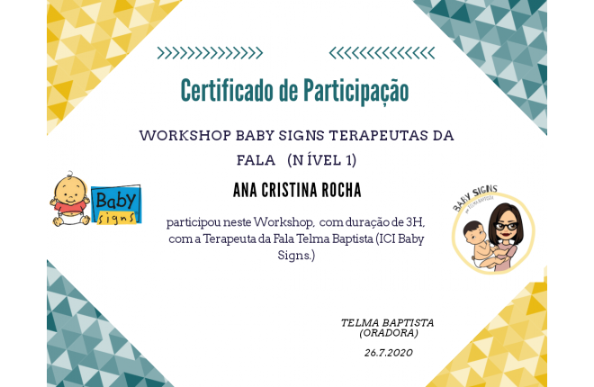 Baby signs abordagem que trabalha com gestos naturais com enfoque semântico ministrado pela terapeuta da fala portuguesa Telma Batista.